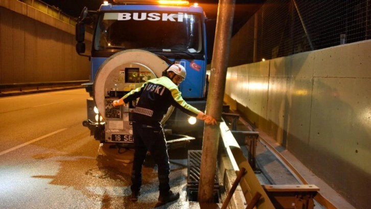 Ana arterler ve batçıklarda 6 vakumlu araç ve toplamda 30 personel ile çalışmalarını yoğunlaştıran BUSKİ ekipleri, 350 adet yağmur suyu ızgara ve baca temizliğini gece boyu süren çalışmayla tamamladı.