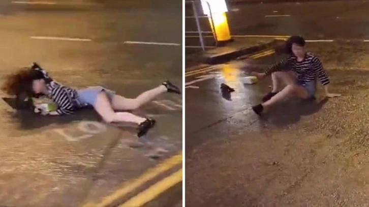 METRELERCE SÜRÜKLENDİHong Kong'tan gelen görüntülerde şiddetli rüzgarın kent merkezinde etkili olduğu ve bir kadını uçurarak metrelerce sürüklediği görüldü.