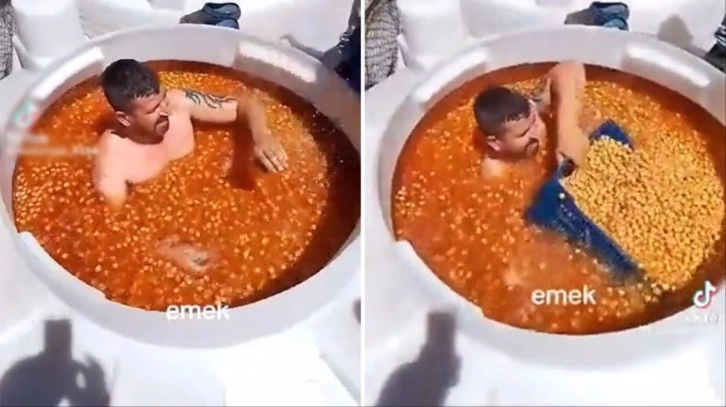 Sosyal medyada paylaşılan bir görüntü kısa sürede gündeme oturdu. Manisa'da çekildiği iddia edilen görüntülerde çıplak bir şahıs, üretim tesisinde yeşil zeytin dolu bir tankın içine girdi.
