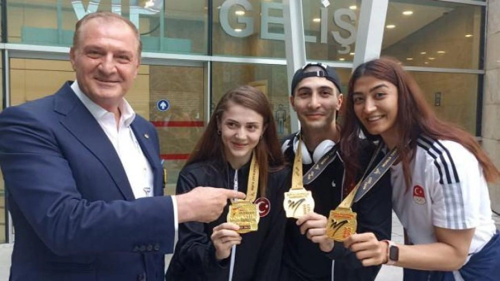 Azerbaycan'ın başkenti Bakü'de devam eden 26'ıncı Dünya Büyükler Tekvando Şampiyonası'nda rakiplerini yenerek altın madalya kazanan Nafia Kuş, Hakan Reçber ve Merve Dinçel, Türkiye Tekvando Federasyonu Başkanı Metin Şahin ile birlikte yurda dönüş yaptı. Esenboğa Havalimanı'na gelen milli tekvandocular ve federasyon başkanı Şahin, basın mensuplarına açıklamalarda bulundu.