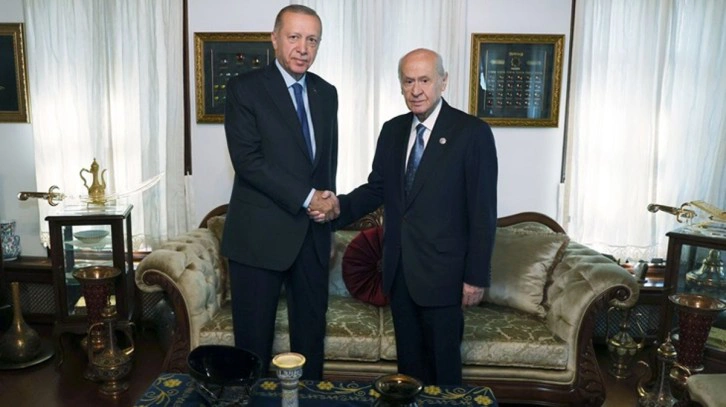 Cumhurbaşkanı Erdoğan'ın sürpriz bir şekilde MHP lideri Devlet Bahçeli'yi evinde ziyaret ederek 50 dakika görüşmesi Ankara kulislerini hareketlendirdi. Erdoğan ile Bahçeli arasında geçen görüşmenin detaylarına ilişkin sürpriz bir iddia ortaya atıldı. Başkent kulislerinde AK Parti'nin Adana, Mersin, Antalya'da belediye başkanlıklarını MHP'ye bırakılabileceği konuşuluyor.
