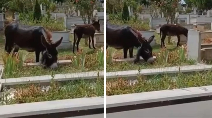 Daha önce köpek sürülerinin istila ettiği İstanbul Sultanbeyli'deki Osmangazi Mezarlığı bu kez farklı bir görüntü ile gündeme geldi. Bahsi geçen görüntülerde başıboş eşeklerin mezarlıkta otladığı görülüyor.