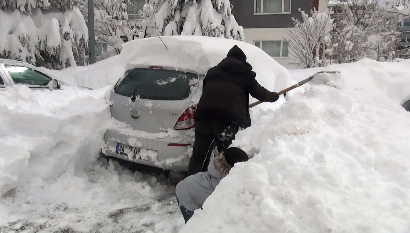 Bitlis’te etkili olan kar yağışı sonrasında vatandaşlar, kar altında kaybolan araçlarını aradı.