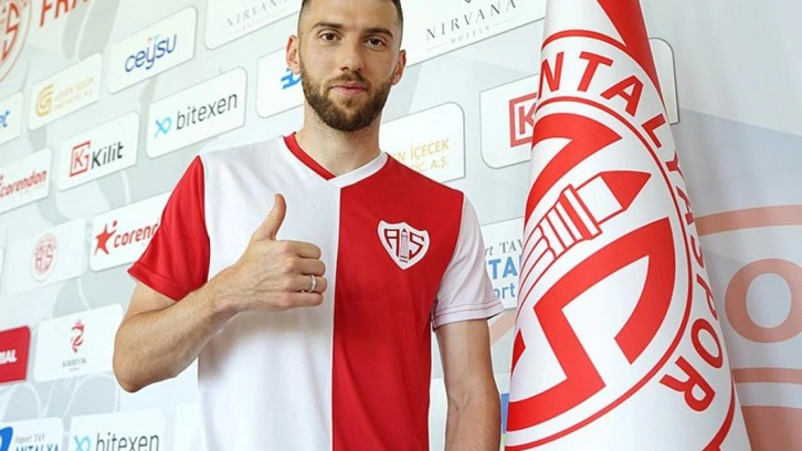 Kanat oyuncusu Zymer Bytyqi, imza töreni sonunda Antalyaspor'un 1969 yılı nostalji forması ile objektiflere poz verdi.