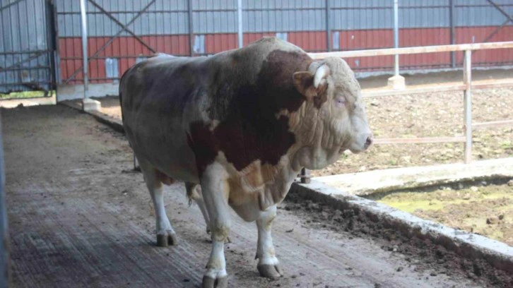 Kral'ın 2 yaşını doldurduğunu söyleyen Veteriner Hekim Şerif Ali Karanfil, "İşletmemizde dünya şampiyonu bir boğanın yavrusu olan ve boğamızı görüyoruz. Bu boğamız 24 aylık, 2 yaşını doldurmuş bir boğa. Kurbanlık vasıflarını yaş itibariyle taşıyan bir boğa. Şu an Düzce’mizin belki de Türkiye'nin rekoru diyebileceğimiz bir ağırlıkta, bin 400 kilo civarlarında. Bu performanstaki boğamızda yüzde 60’lık et performansı bekleriz. 850 kiloya yakın bir et çıkacağını düşündünüz bir boğamız. Bu bir anlamda hem hobi göz zevkinizi tatmin ediyor hem de piyasaya güzel bir et sunuyor. Almak isteyenler için de satışta olan bir boğamız, alıcılarını bekliyoruz. 250 bin TL’den satışta, zaten et karşılığına baktığımızda da Kurban rayiçlerinde bir boğamız" ifadelerini kullandı.