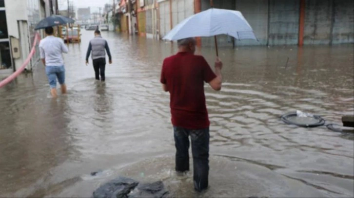 Sinop'ta etkili olan sağanak yağış hayatı felç etti. Yaşanan sel felaketi nedeniyle ev ve iş yerlerini su bastı.