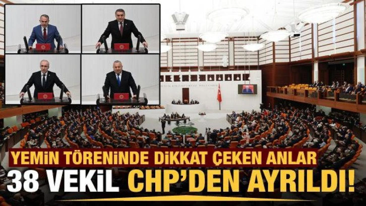 Yemin töreni esnasında TBMM'de ilginç görüntüler de kaydedildi. CHP listelerinden seçilerek parlamentoya giren İYİ Parti, DEVA Partisi, Gelecek Partisi, Saadet Partisi ve Demokrat Parti milletvekilleri yemin töreni öncesi CHP grubundan ayrıldı. Meclis'teki törende yemin için kürsüye çıkan milletvekillerinin tanıtım yazılarında kendi partilerinin isminin yazdığı görüldü.