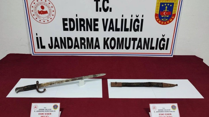 Ekipler şüphelinin üzerinde yaptığı aramada satışa çıkarmayı planladığı tarihi eser niteliğinde ve Osmanlı dönemine ait olduğu değerlendirilen kılıç ve kılıca ait kın buldu.