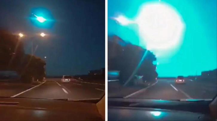 Sosyal medyada yer alan görüntülerde, göktaşının parlak bir ışık eşliğinde dünyaya düştüğü görüldü.